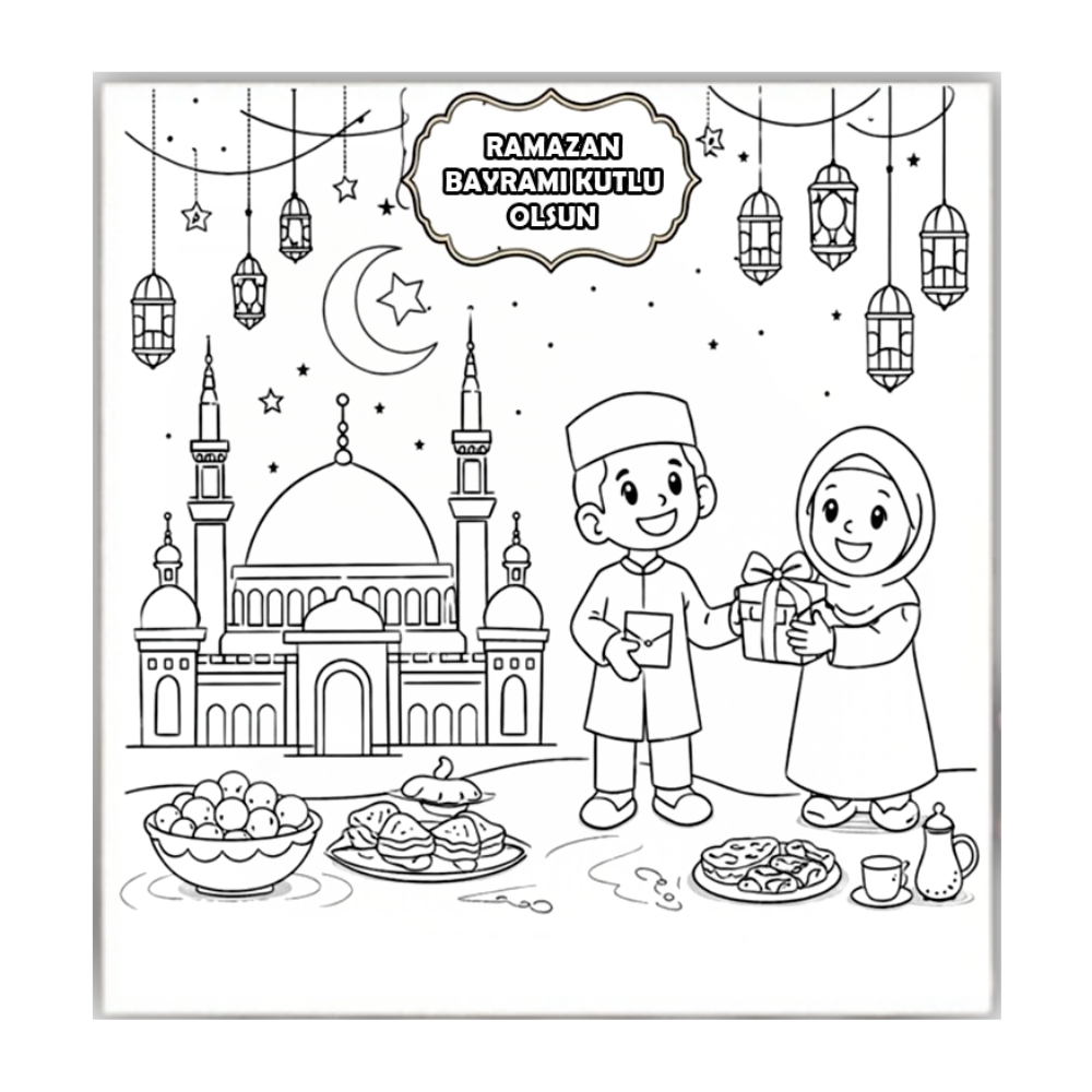 Ramazan Temalı Özel Baskılar: Camii, mahya, hilal ve Ramazan davulcusu gibi bu aya özel anlamlı görsellerle çocukların ilgisini çeker.